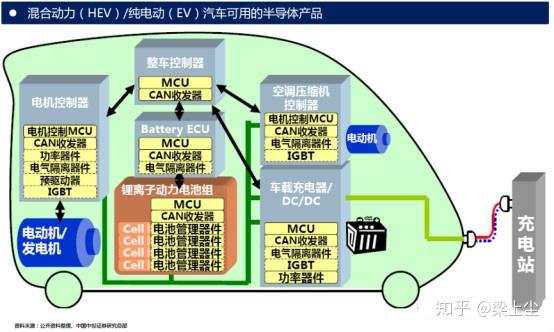IGBT模块在电动汽车中发挥着至关重要的作用,是电动汽车及充电桩等设备的核心技术部件。IGBT模块占电动汽车成本将近10%,占充电桩成本约20%。IGBT主要应用于电动汽车领域中以下几个方面: